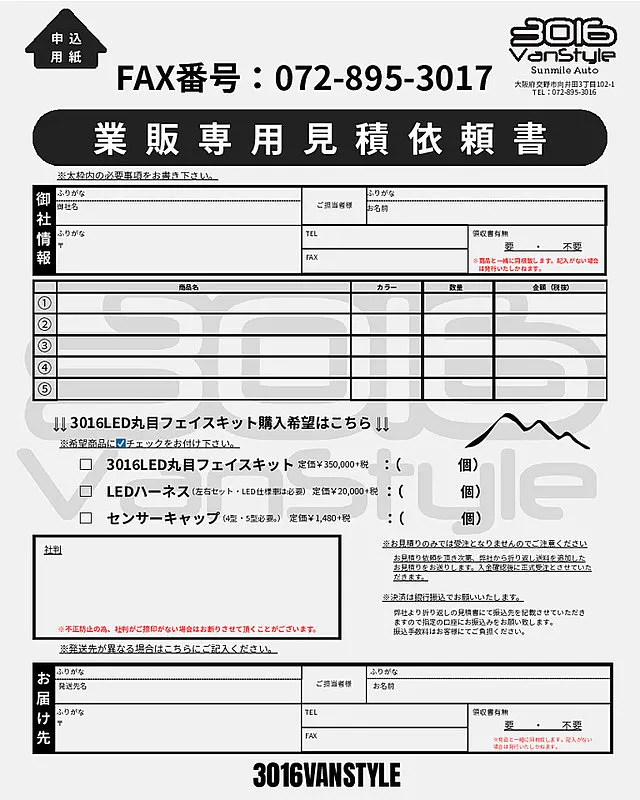業者販売希望の方はこちらを印刷し、必要項目に記入後FAXにて送信お願い致します。
